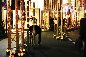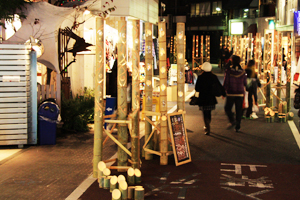 綺麗な竹キャンドルオブジェを歩道に並べて、普段の原宿では見れない非日常的な幻想空間を多くの方に見ていただきました。